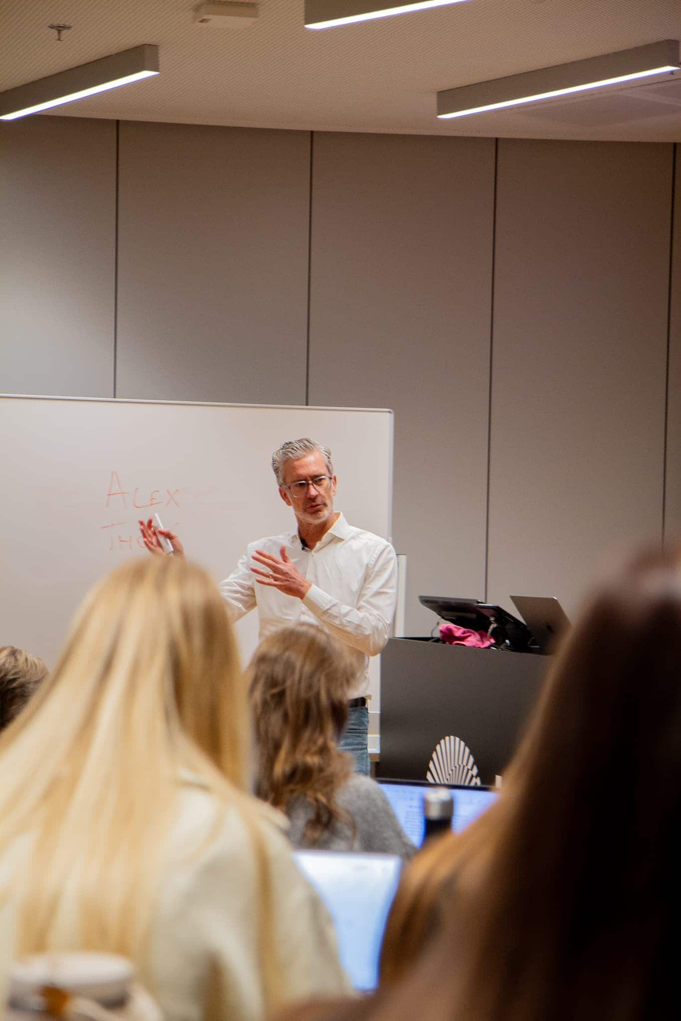 Hij begon als marketeer bij Procter & Gamble, ging daarna all-in op reclame en media voor grote namen zoals Coca-Cola, Danone en Proximus. Nu CEO bij VAR. Zijn gastlezing? Binnenkomen met een fles wijn (niet om te delen, jammer) en een verhaal vol humor, ervaring en scherpe inzichten. Kortom: kwaliteit en toekomst in één pakket.